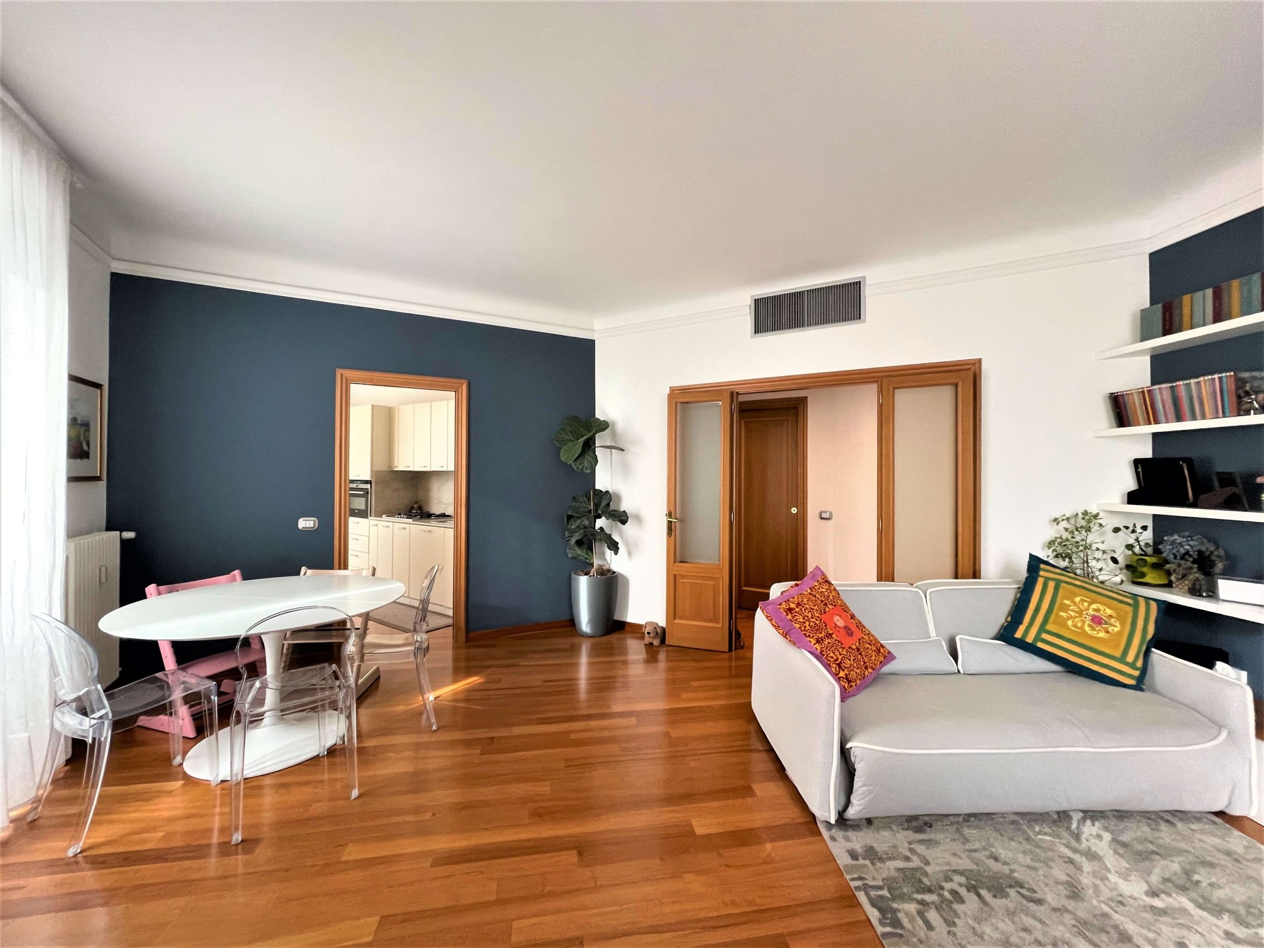 L’appartamento si presenta in ottimo stato manutentivo, i pavimenti sono tutti in parquet – fatta eccezione per i bagni – e, grazie alla pregevole tripla esposizione, risulta luminosissimo. Il riscaldamento è centralizzato con termovalvole ed è presente l’impianto canalizzato di aria condizionata in tutti i locali.